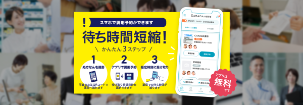 CARADAお薬手帳を使った調剤予約や電子手帳がご利用できます。