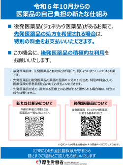 患者さんが 長期収載品の 処方等又は 調剤を 希望する場合は、 特別の 料金として、 品最高価格帯との差額の1/4を徴収します。